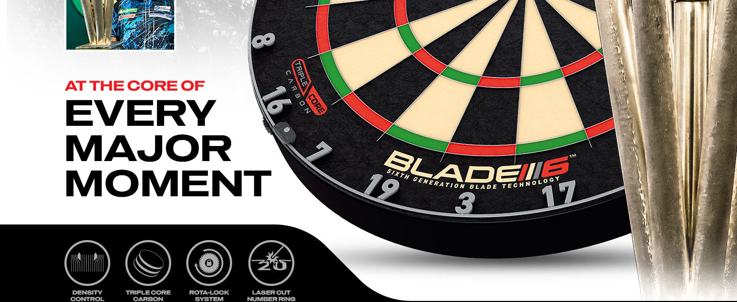 The Blade 6 Triple Core dartboard celebrates the latest PDC Exclusive Endorsement, where the world’s best professionals will now play the most technically advanced dartboard available, creating thousands of new stories.