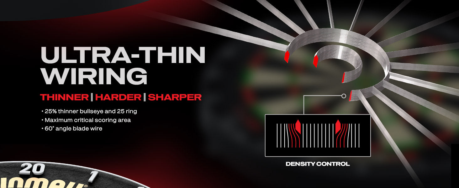 The fully hardened bullseye and outer bull, both featuring ‘Density Control™’ wire, are now 25% thinner.