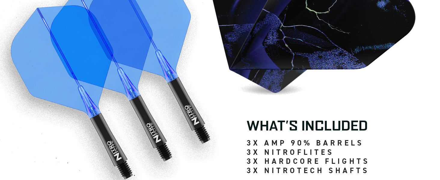 Crafted from 90% premium tungsten, each Amp dart combines professional-grade durability with refined feel. The precision engineering ensures consistent balance and effortless handling, while the distinctive machined grip pattern channels pure energy down the barrel.