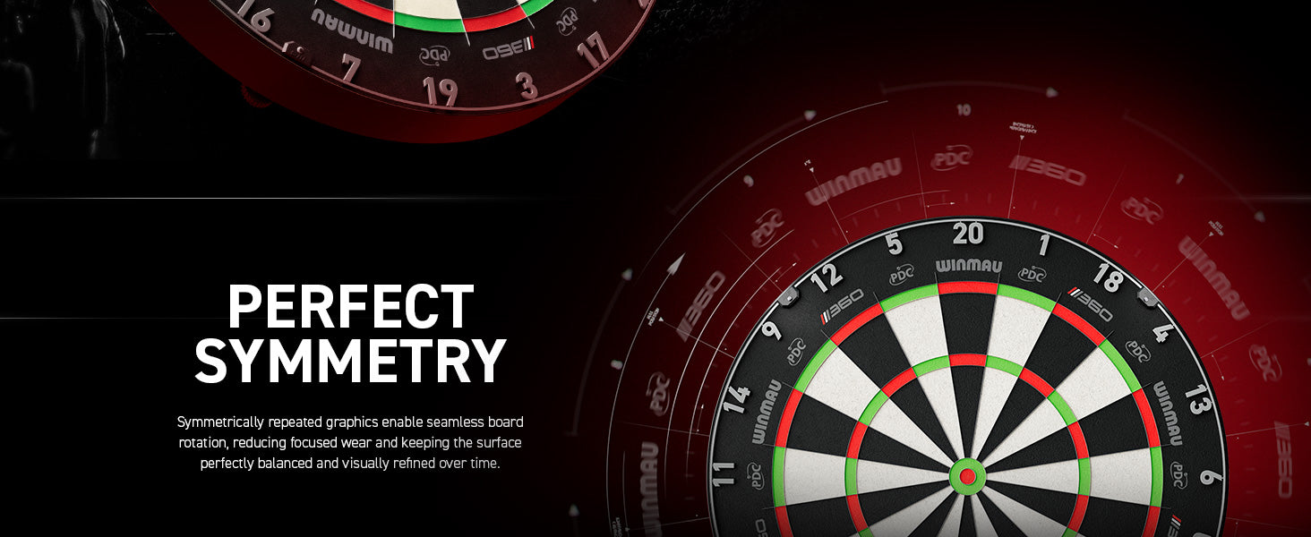 Designed to perform, the Symmetrical 360° Design features 10 perfectly balanced rotation points - ensuring even fiber wear and eliminating hot spots for consistent rotation and maximises board life by evenly distributing dart impact across the surface. With a clean, minimalist design and high-contrast print technology, this board looks as sharp as it plays.