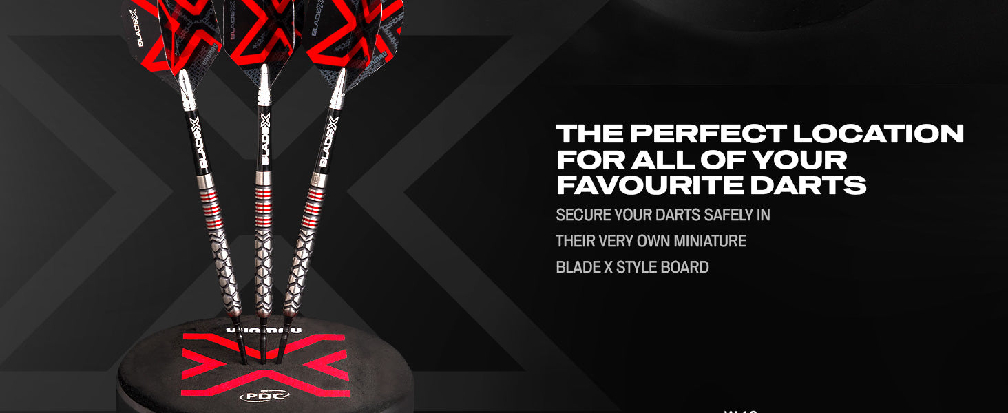 The Blade X Dart Dock is the perfect way to store and showcase your favourite darts. Designed as a miniature Blade X-style dartboard, it securely holds your darts in place while adding a striking display piece to any setup.
