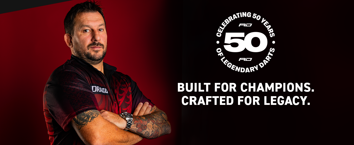Engineered from lightweight, breathable performance fabric, this shirt is built for the oche and beyond — combining elite comfort with iconic styling. The bold design reflects Jonny’s fierce competitive spirit while commemorative 50-Year detailing makes it a true collector’s edition.