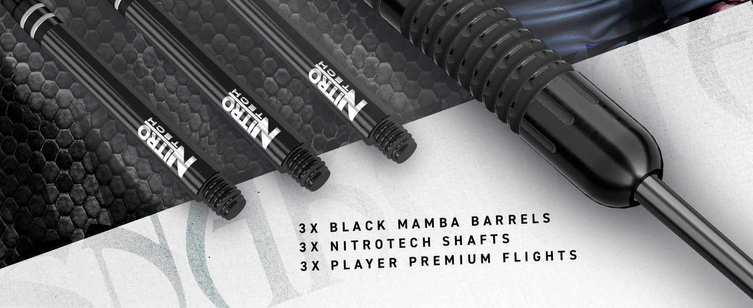 Featuring a parallel barrel profile for smooth release and consistent control, the Black Mamba design embodies Peter’s signature playing style. Each set is fitted with Nitro Tech shafts ensuring optimal stability.