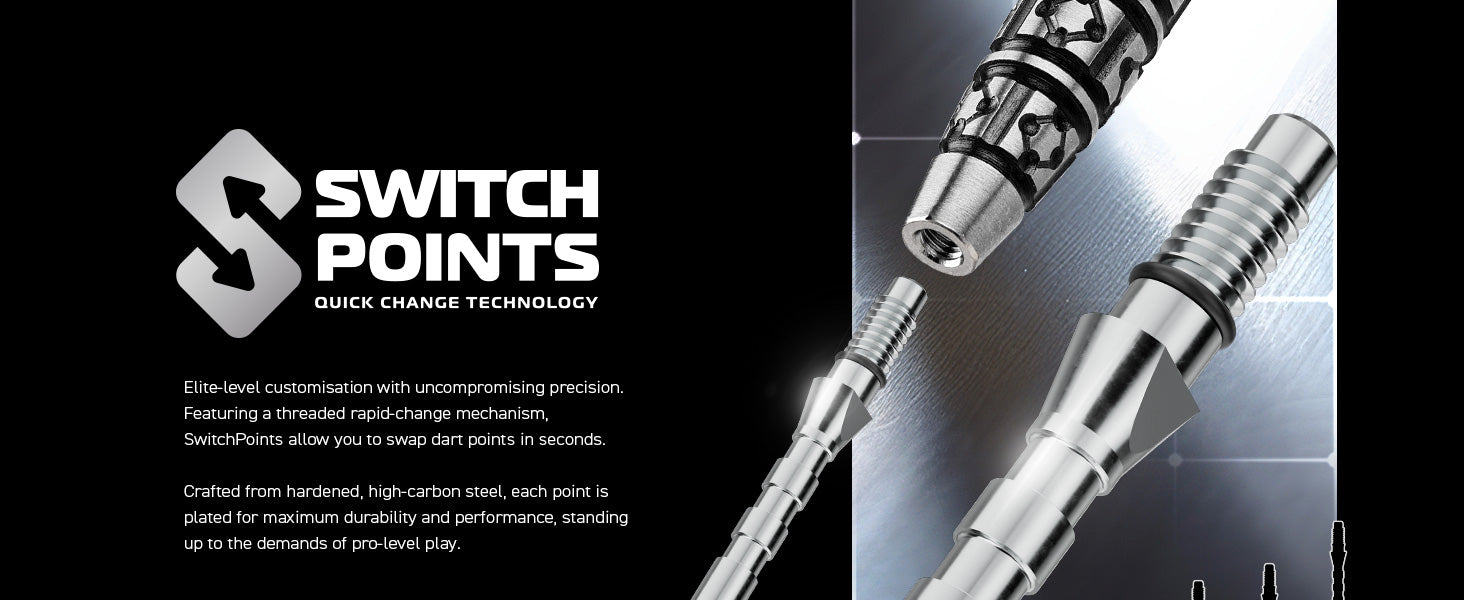 Featuring Rapid Point Change Technology, Switch Points allow you to change your dart points effortlessly in seconds. The precision-threaded design ensures a secure, locked-in fit every time - no movement, no wobble, just rock-solid stability from throw to throw.