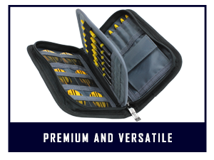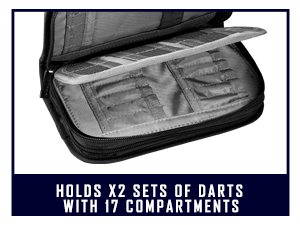 Carry your darts in style with the Winmau Urban-Pro Case. This premium darts case has outstanding features and build quality, and is highly versatile to allow the storage of a variety of accessories. Tried and tested by dart players, you get superb storage capacity with multiple, versatile compartments and the ultimate in modern design and practicality. Holds 2 sets of darts with 17 velcro, zip and pocket compartments for huge storage capacity.